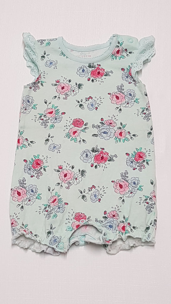 PRIMARK BABY GYÖNYÖRŰ SZÉP VIRÁGOS,HÍMZETT UJJÚ ,FODROS KISLÁNY PLAYSUIT 74