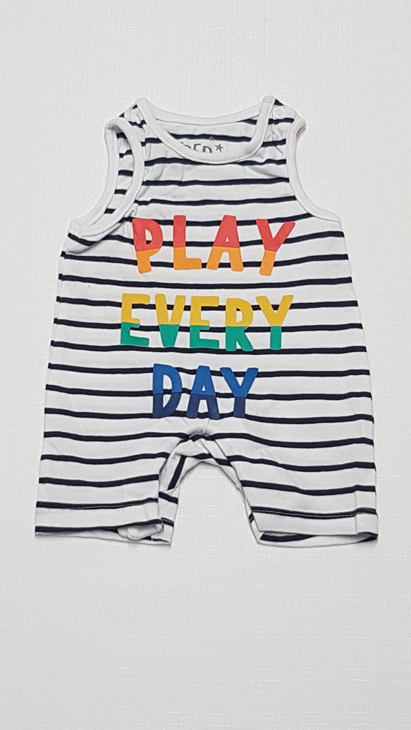 ÚJ F&F PLAY EVERY DAY CSÍKOS,FELIRATOS UNISEX PLAYSUIT 50
